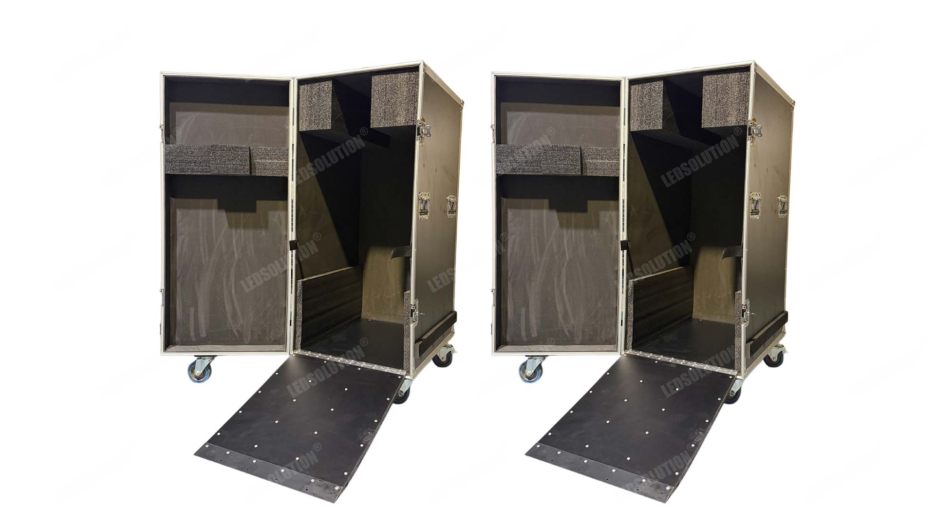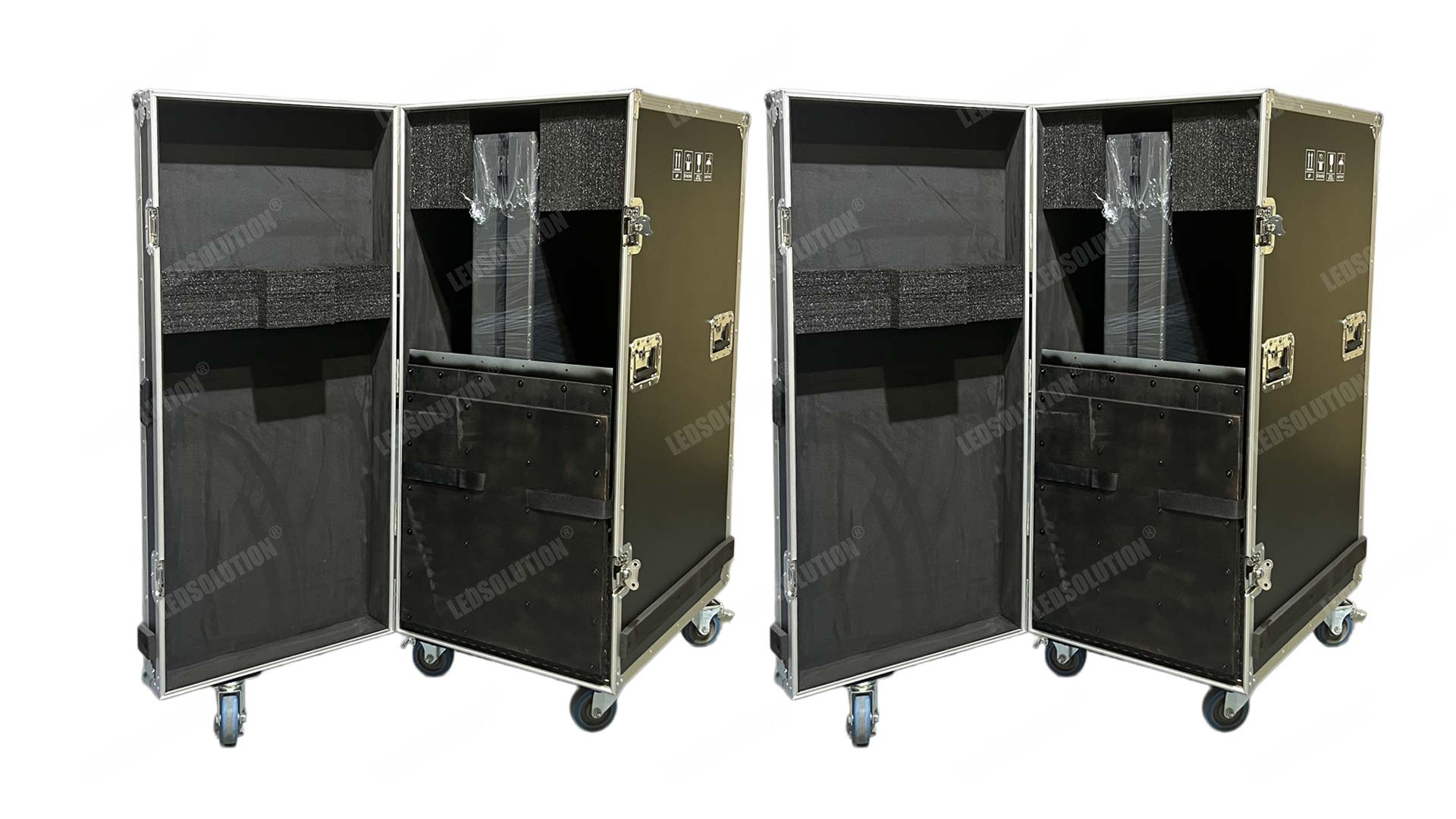 The folded structure reduces packaging volume, making transportation more efficient. Each unit is protected by a dedicated flight case, ensuring safety during shipping and handling.
