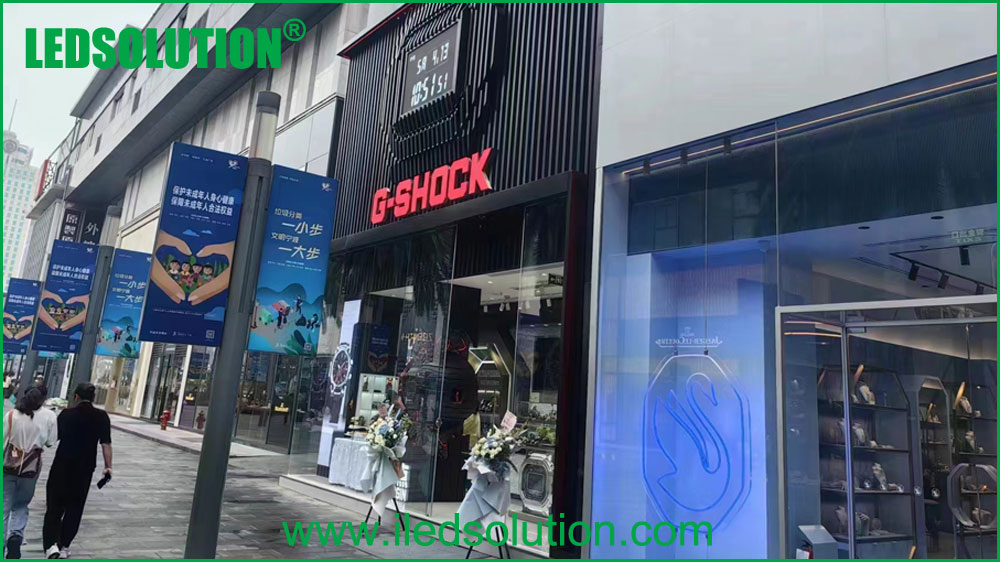In today’s ever-evolving retail landscape, the uniqueness and allure of brand storefronts are paramount. For the satellite stores of a renowned watch brand, showcasing their distinctive charm within limited space presents a challenge. LEDSOLUTION’s semi-outdoor corner LED Display project offers the perfect solution to this challenge.